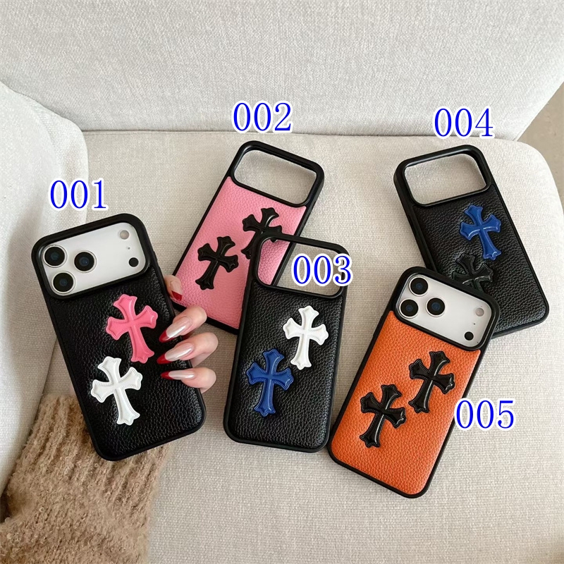 chrome hearts iphone17/17pro ケース ブランド iphone16pro/15 ケース レザー かっこいい iphone14PRO/13 ケース ハイ ブランド 韓国 メンズ スマホケース 革 お 揃い アイフォン ケース 人気 ブランド