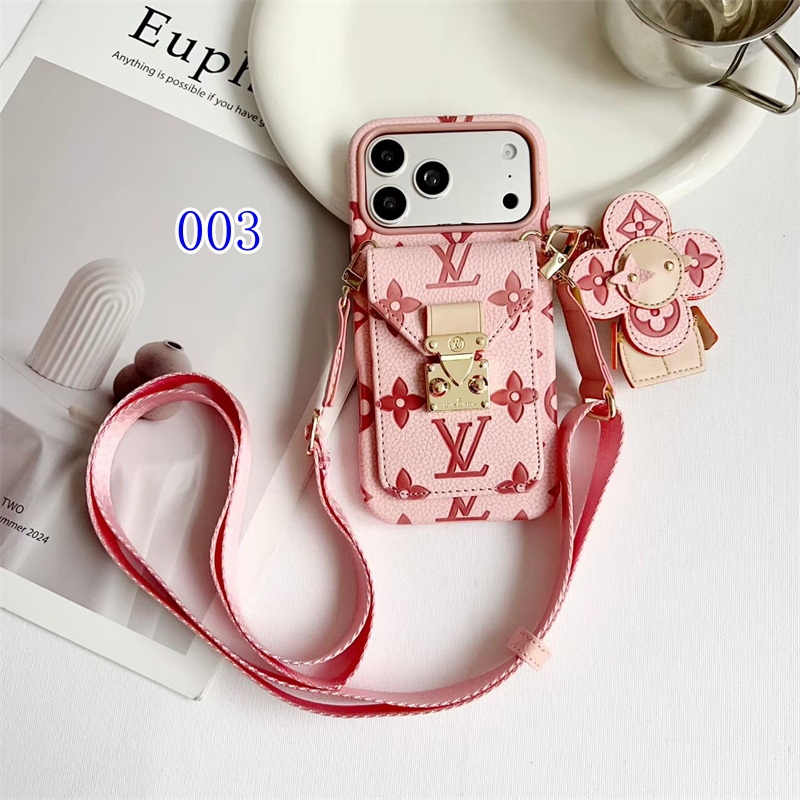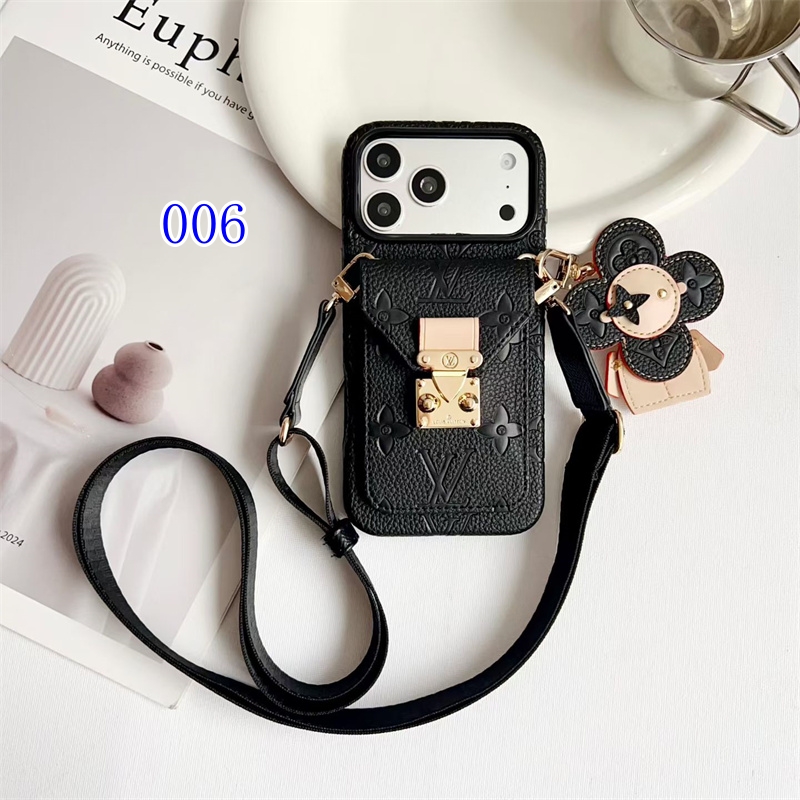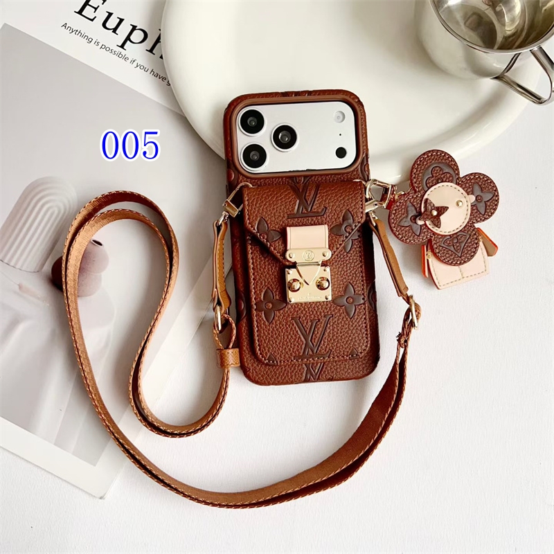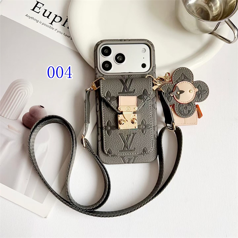 iPhone17/17pro/17promax対応のルイヴィントン風スマホショルダーケース2026最新作。可愛いヴィヴィエンヌアクセサリー付き、アイコニックなモノグラム柄を採用、両手を解放できるスマホショルダーにカード収納ポケット付きで、身軽に出かけるのに最適なアイテムで間違いなし!